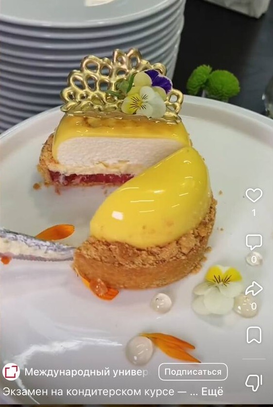 «Несколько лет назад и я окончила курсы кулинарного искусства в американском университете, а в этом году мой авторский десерт был представлен одной из учениц на экзамене. Десерт получил 93 из 100 баллов»!